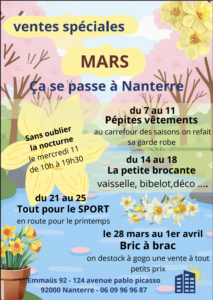 Ventes spéciales de mars à Emmaüs Nanterre (92)