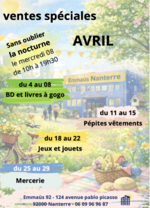 Ventes spéciales de mars à Emmaüs Nanterre (92)